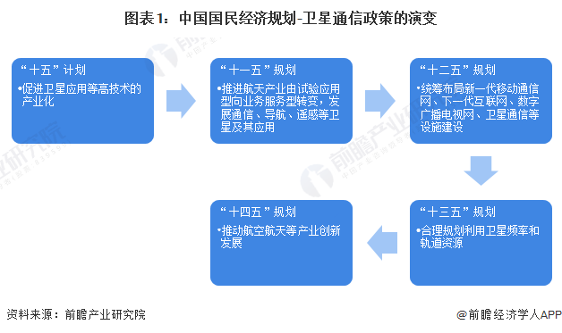 “十五”计划(2001-2005年)时期,国家层面提倡:促进卫星应用等高技术的产业化;从“十一五”规划开始,规划明确了推进航天产业由试验应用型向业务服务型转变,发展通信、导航、遥感等卫星及其应用;“十二五”至“十三五”期间,规划明确了统筹布局卫星通信等设施建设以及合理规划利用卫星轨道资源。到“十四五”时期,根据《“十四五”规划和2035年远景目标刚要》,推动航空航天等产业创新发展成为“十四五”时期的重要任务。