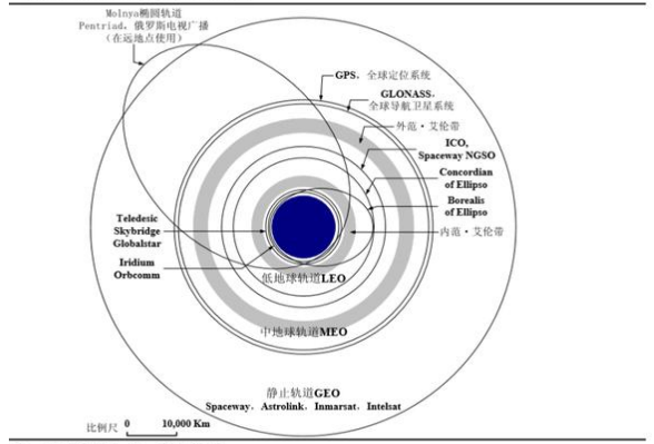 中轨道(MEO)卫星通信:MEO卫星运行于距地面2000-20000km的轨道上,其传输时延、覆盖范围、链路损耗、功耗大于LEO但小 GEO。