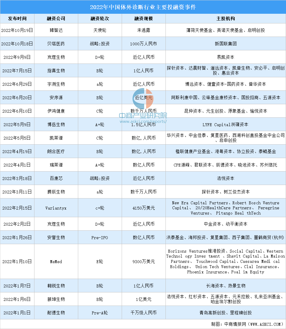 体外诊断投融资情况