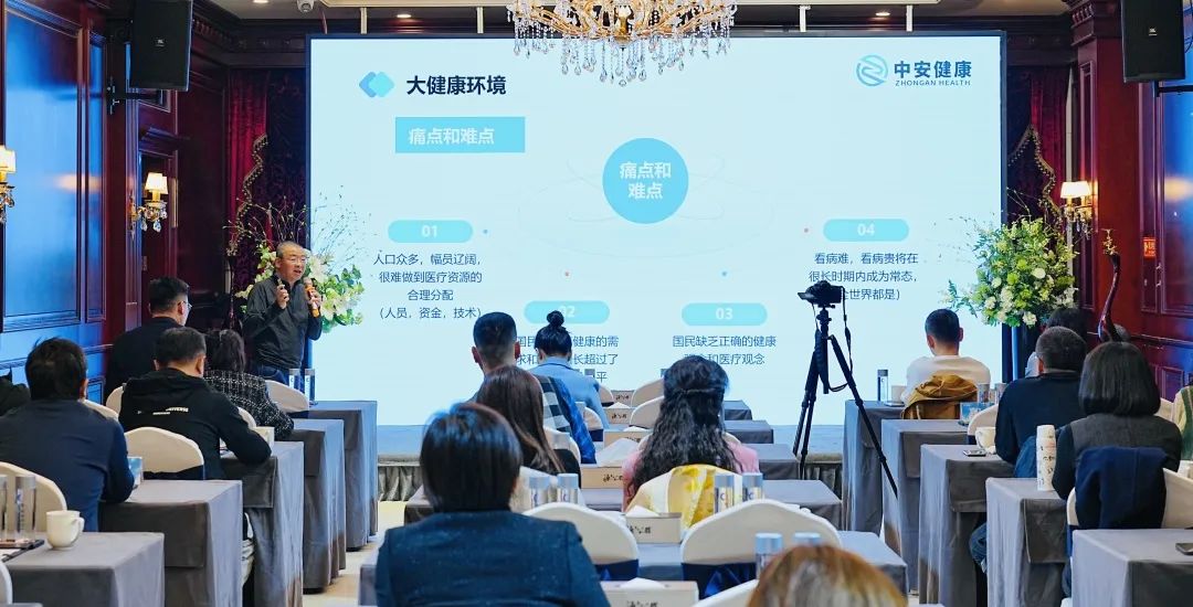中安健康副总经理陈总现场分享了国内大健康环境、产业发展趋势、产品体系等内容。并表示,随着生活水平的提高和健康意识的觉醒,人们对健康产品和服务的需求呈现出爆发式增长。大健康产业无疑是一个极具潜力的领域。中安健康依托先进的健康管理资源及丰富的产品线,未来期待能与祥和启源一道,发挥各自所长,实现资源深度协同,携手为生态伙伴打造一站式、智慧健康管理和医疗保障服务,共同推动大健康产业高质量发展。