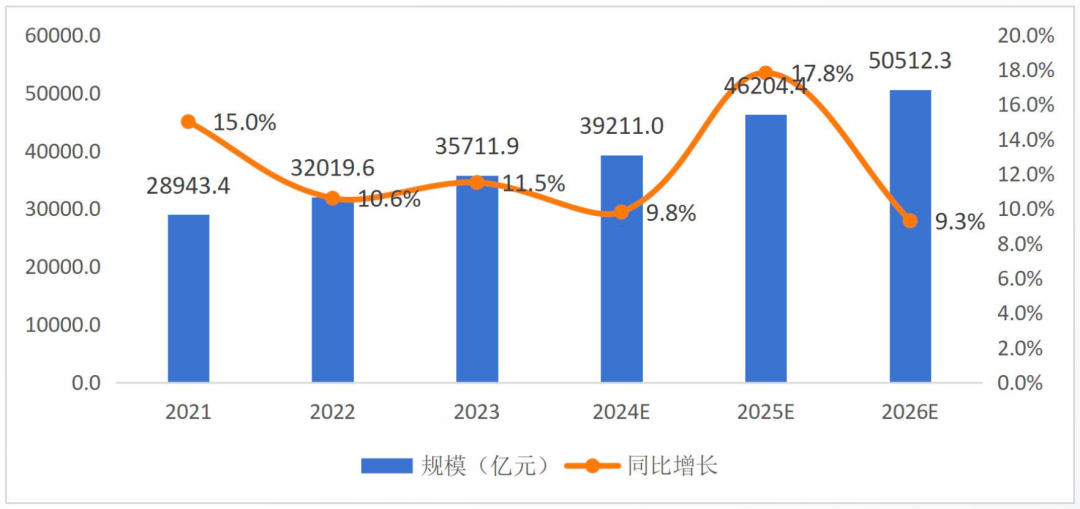 根据赛迪研究院数据,2021-2026年中国医药健康产业规模预计从28943.4亿元增长至50512.3亿元,年均复合增长率达11.7%。此增长趋势主要归因于我国老龄化进程的加速与疾病谱的变迁。这两大因素共同催生了对医药健康产业的刚性需求。